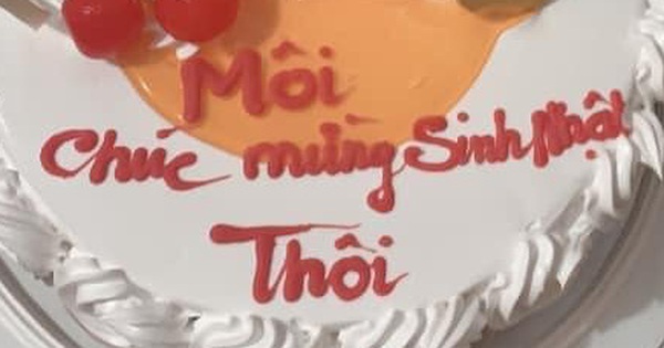 Chuyện là mới đây, chị Thu Hiền có đặt một chiếc bánh kem để chúc mừng sinh nhật người nhà. Đương nhiên không thể thiếu phần lời chúc nên chị đã nhắn gửi: "Ghi môi CMSN thôi" (Ghi mỗi Chúc mừng sinh nhật thôi). Và anh thợ làm bánh của chúng ta thì quá sức thật thà, cứ tưởng Môi chúc mừng sinh nhật Thôi nên đã ghi luôn ngay dòng chữ này lên bánh.