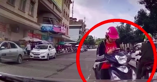 Sau đó, người phụ nữ điều khiển xe máy đã nhìn thấy ô tô di chuyển lại gần nhưng không quan tâm và tiếp tục cúi xuống nhìn điện thoại. Khi chiếc xe ô tô dừng hẳn và có ý nhắc xe máy tránh đường, người phụ nữ này còn quát tháo tài xế ô tô và bảo tài xế đi vào khoảng trống, tức trái làn đường được đi, rồi tiếp tục cúi xuống nhắn tin.