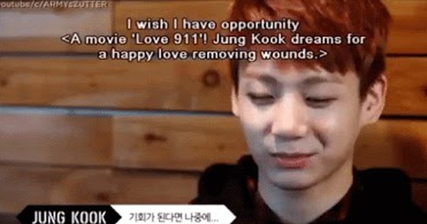 Cụ thể, em út vàng nhận được câu hỏi: "Phân cảnh nào trong phim khiến bạn muốn trải nghiệm ngoài đời thực nhất?" và câu trả lời của nam thần tượng khiến các fan phải bất ngờ. Tuy hơi ngại ngùng nhưng Jungkook tiết lộ cảnh hôn kết thúc bộ phim "Love 911" thực sự gây ấn tượng với anh chàng và trong tương lai có thể nam thần tượng sẽ thử làm điều này với bạn gái.