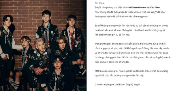 Sau gần 1 tháng kể từ khi lùm xùm xảy ra, mới đây, văn phòng đại diện của công ty SM Entertainment tại Việt Nam đã đưa ra thông báo xin lỗi chính thức về sai sót trong lỗi trang phục của WayV. Theo đó, nguyên văn thông báo từ địa diện văn phòng công ty như sau: