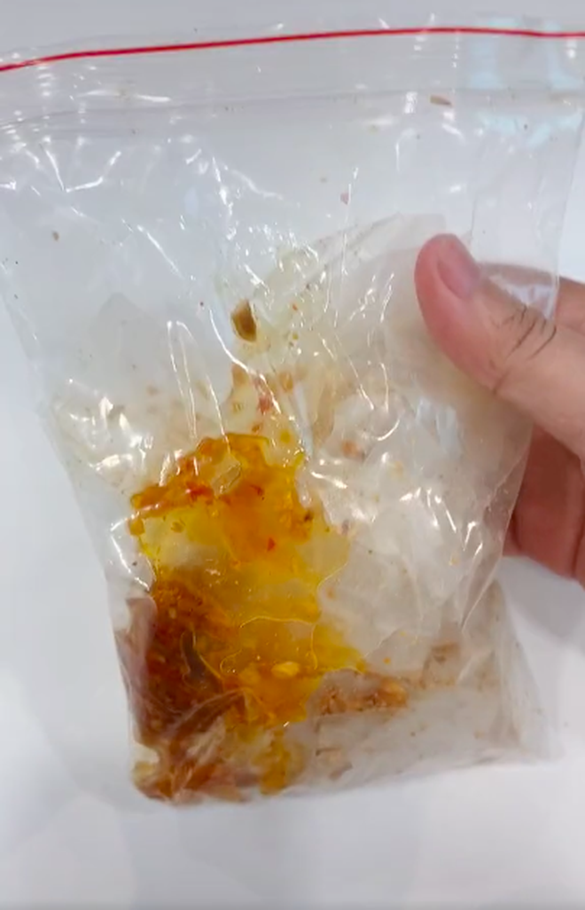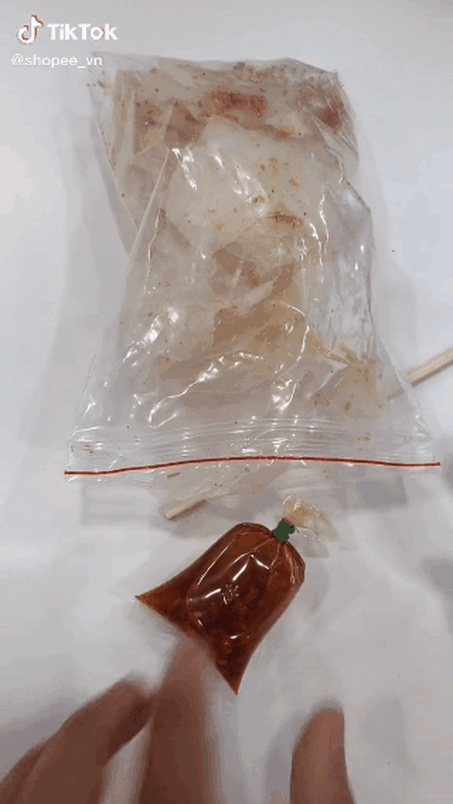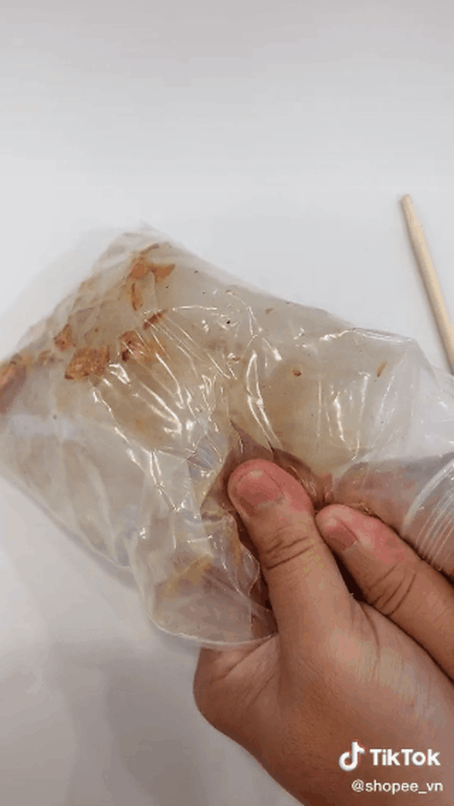 Nhưng bạn có công nhận không, mỗi lần bóc túi sa tế ra thật sự khá tốn thời gian lại còn hay bị dính vào tay và quần áo. Để giải quyết được vấn đề đó, tài khoản TikTok dưới đây đã hướng dẫn cách làm đơn giản hơn, đó là cho bịch sa tế vào bên trong, sau đó hãy giữ chặt phần miệng túi rồi dùng lực tay ấn thật mạnh để nó vỡ ra.