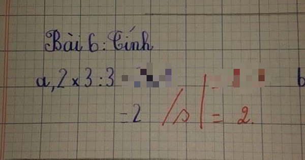 Nhiều người có thể nhắm mắt mà giải quyết đề bài này trong tích tắc nhưng với học sinh thì chưa hẳn. Đáp án mà học sinh đưa ra trong bài là 2, dĩ nhiên đây là kết quả đúng, nhưng cô giáo đã không tính kết quả này và gạch sai. Đọc qua phần lý giải mà cô giáo chữa cho học trò thì ai cũng tấm tắc.