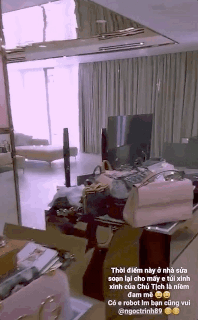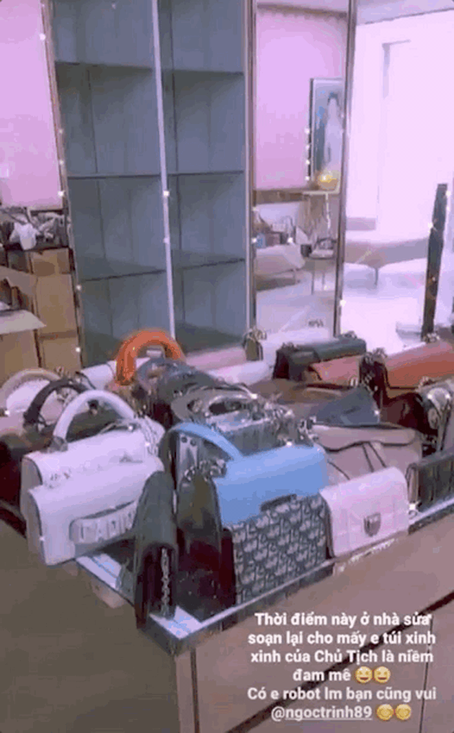 Ngay sau đó, Ngọc Trinh cũng đáp lại đoạn story của Thuý Kiều: Rảnh thì coi giùm có bao nhiêu chiếc túi đi cưng.
