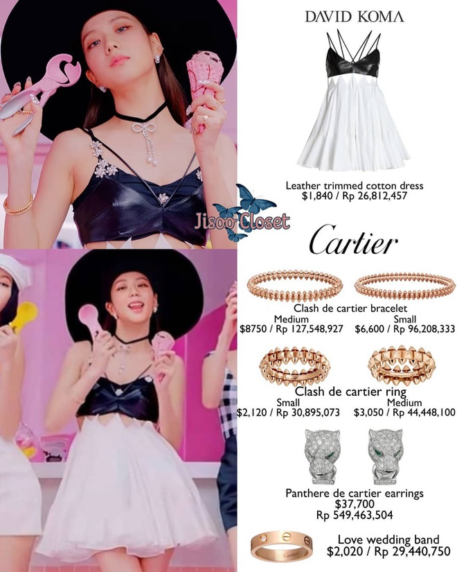 Đây có thể nói là set đồ sến súa, hầm bà lằng nhất của Jisoo trong Ice Cream nhưng hỡi ôi, có ai biết rằng tổng giá trị của nó đã lên đến 1,5 tỷ đồng không. Tất cả là vì cô diện nhiều phụ kiện của Cartier đấy.