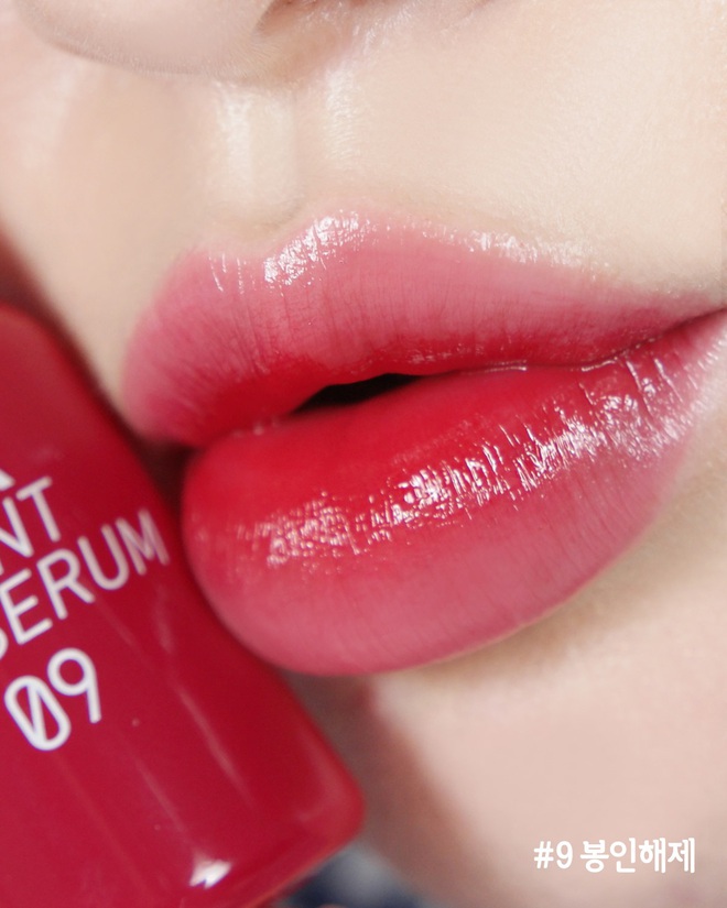 Nếu bạn muốn tìm 1 màu son có sắc đỏ rõ hơn , nổi trội hơn 1 chút vậy thì màu 09 của Peripera Ink Tint Serum sẽ là sự lựa chọn phù hợp. Màu son tươi tắn mà không hề kén tông da. Khi bạn đánh nhẹ nhàng 1 lớp sẽ ra sắc son hồng phơn phớt, còn khi đánh chồng nhiều lớp sắc đỏ tươi sẽ hiện ra rõ hơn, khiến đôi môi tươi tắn. Dòng son này có chứa nhiều dưỡng, có độ bóng nhẹ lại có khả năng bám màu khá tốt.