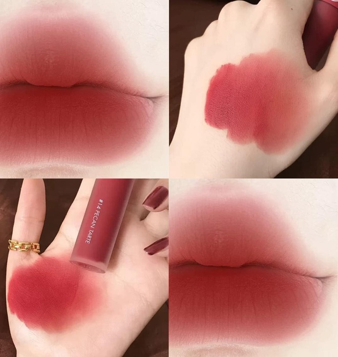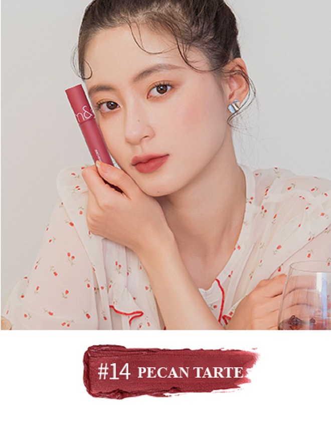 Còn nếu bạn muốn tìm 1 màu son có sắc đỏ đất rõ hơn thì Romand New Zero Velvet Tint màu #14 là gợi ý đáng tham khảo. Chất son lì khá mềm mướt, thiết kế đầu cọ nhỏ gọn giúp bạn dễ dàng vẽ được viền son ưng ý. Màu son này khá dễ đánh, dù không trang điểm cũng có thể dùng được.