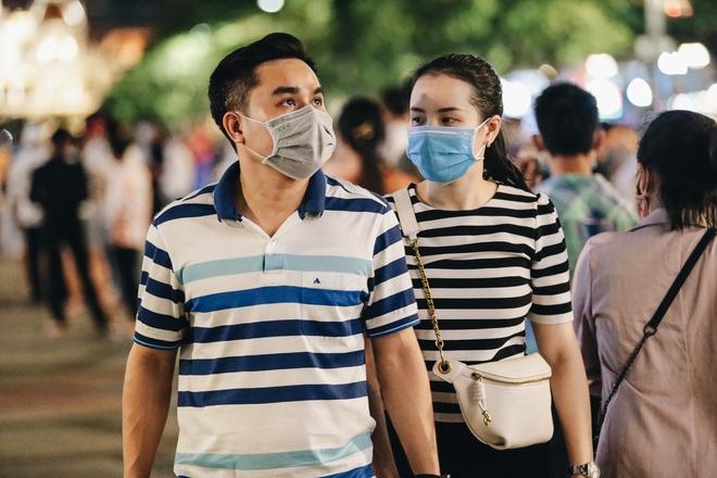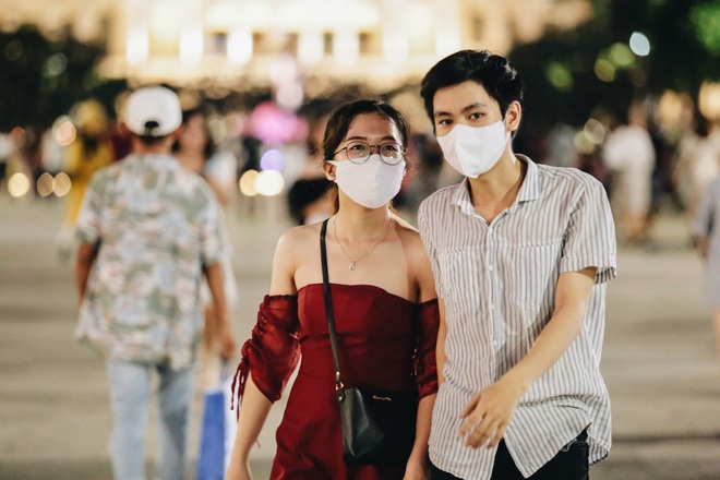 Nhiều người bất ngờ khi thấy phố đi bộ Nguyễn Huệ đông đúc trở lại và để đảm bảo an toàn cho bản thân thì khẩu trang là phụ kiện không thể thiếu trong những ngày đi chơi lễ năm nay.