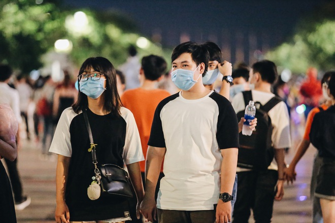 Do tình hình dịch bệnh, lễ Quốc khánh năm nay không bắn pháo hoa như mọi năm nhưng không vì thế mà kém vui. Các bạn trẻ đeo khẩu trang thích thú dạo chơi phố đi bộ để mừng ngày Quốc khánh.