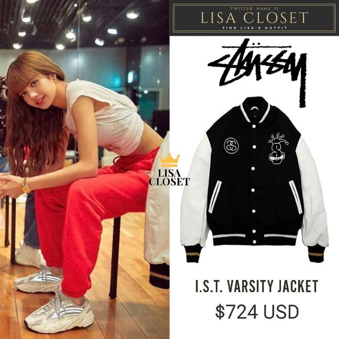 Ấn tượng nhất là nàng búp bê Thái Lisa, cô diện áo thun mix cùng quần thể thao, khoác áo bomber. Cô cố tình thắt vạt áo phía sau để khoe eo thon. Số trang phục của Lisa có giá khoảng 28 triệu VNĐ chưa tính đến chiếc đồng hồ Rolex khoảng 730 triệu VNĐ.