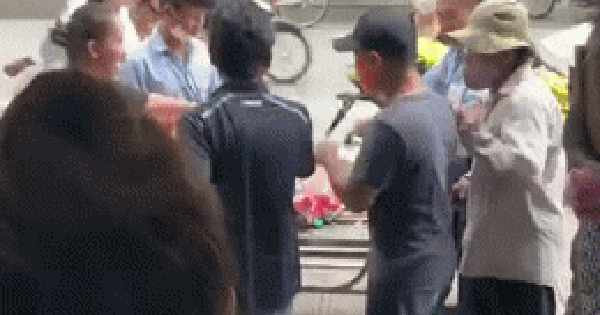 Thấy vậy, một số người đã tiến vào đề nghị đem ra và thể hiện mình sẽ không tranh cướp. Tuy nhiên, khi gia chủ vừa bê khay heo sữa quay ra, đang chuẩn bị đặt lên bàn cúng thì nhóm 3 - 4 "cô hồn sống" đã ngay tức khắc lao tới giành giật, thậm chí xô ngã cả gia chủ xuống đất. Dù bị xô đẩy, chưa kịp cúng bái đã bị giật mất con heo quay nhưng chủ nhà vẫn tỏ ra vui vẻ. Sau đó, bảo vệ cửa hàng có đuổi theo nhằm lấy lại chú heo quay nhưng bất thành.