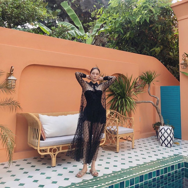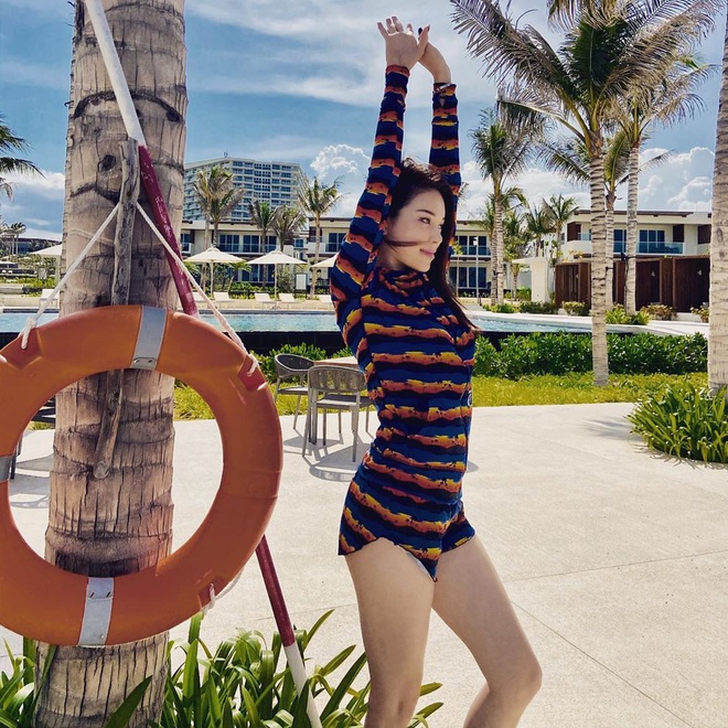 Còn ở hiện tại, thật khó để thấy được những khoảnh khắc gợi cảm của Linh Rin bởi cô nàng lại trung thành với kiểu bikini 1 mảnh, kín đáo nhất có thể. Cho dù ở bể bơi resort hay đi nghỉ mát ở Nha Trang cùng Phillip Nguyễn, nàng hot girl đều lựa chọn phương án "kín cổng cao tường".
