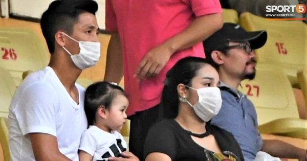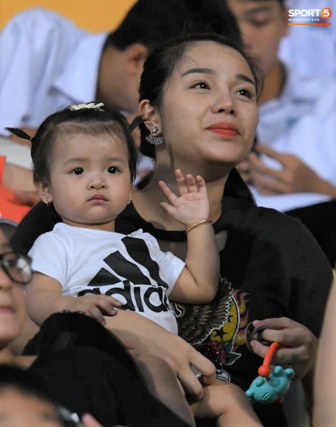 17h chiều 26/9, trung vệ Bùi Tiến Dũng bế con gái Sushi đến sân Hàng Đẫy để theo dõi trận đấu vòng 12 giữa CLB Viettel và CLB Sài Gòn. Đi cùng anh còn có vợ chưa cưới Nguyễn Khánh Linh và mẹ của cô nàng. Bàn tay bé nhỏ của con gái Sushi "túm" chặt lấy áo "bố" Dũng