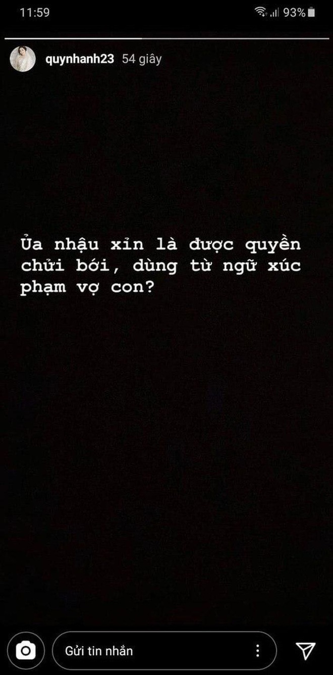 Ngày 10/5, bà xã Duy Mạnh bỗng đăng story ẩn ý: "Ủa nhậu xỉn là được quyền chửi bới, dùng từ ngữ xúc phạm vợ con?". Dù đã xóa bài chỉ sau ít phút đăng tải nhưng dòng trạng thái này của Quỳnh Anh khiến tin đồn cô và Duy Mạnh lục đục lan truyền chóng mặt trên mạng xã hội.