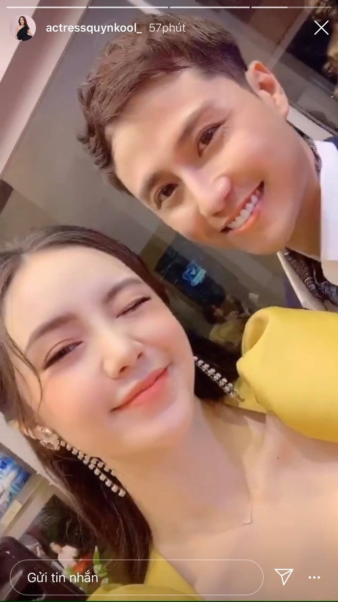 Giống như các khách mời của lễ trao giải, cả Quỳnh Kool lẫn Thanh Sơn đều lựa chọn trang phục cực kì thanh lịch, sang trọng. Đặc biệt sau khi check-in thảm đỏ, cặp đôi còn khoe khoảnh khắc hậu trường tình bể bình.