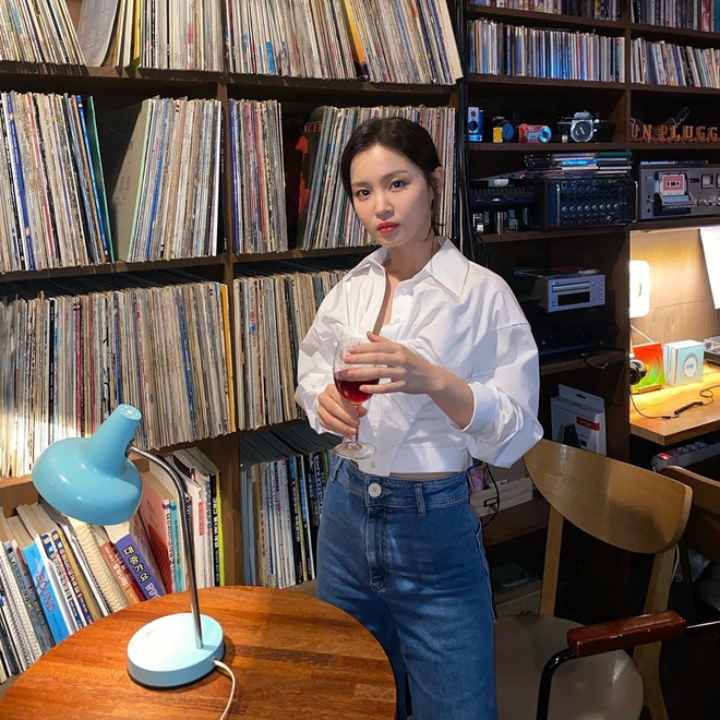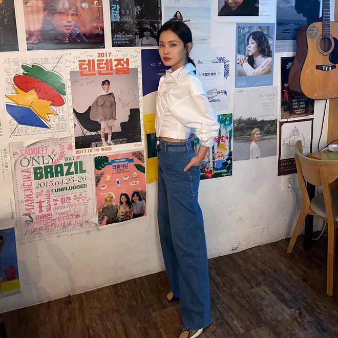 Lee Hi cũng vừa diện mẫu áo này trong ảnh street style thường ngày. Cô lên đồ khá đơn giản khi mix áo cùng quần jeans ống suông basic, để tóc buộc thấp gọn gàng.