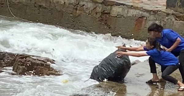 Hình ảnh nhân viên quăng bao rác xuống biển