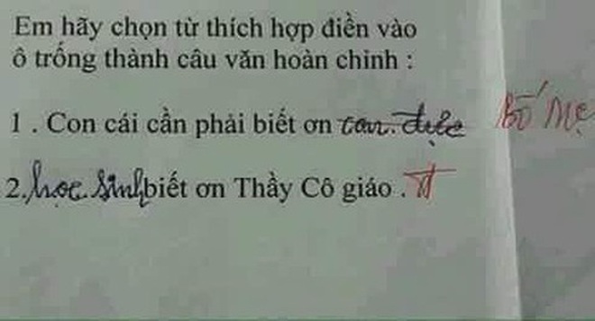 Thời gian qua, cộng đồng mạng đã rần rần chia sẻ những đoạn thành ngữ, tục ngữ do học trò lớp 1 đặt ra. Thay vì nhớ như in những lời giáo viên dạy, học trò đã biến hóa chúng thành những câu miêu tả "lột trần" vừa hài hước mà cũng siêu thâm thúy, thậm chí nhiều khi còn được khen hay hơn cả câu gốc.
