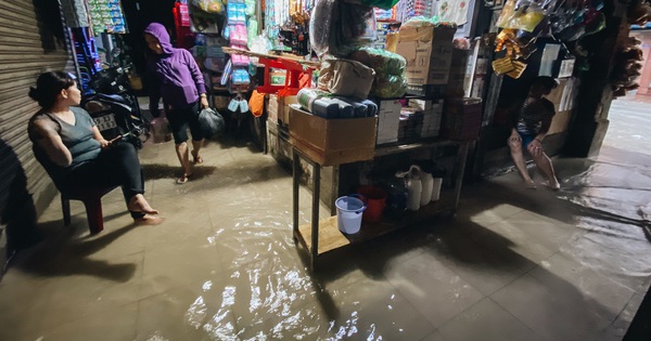 Nước tràn từ ngoài đường vào trong chợ