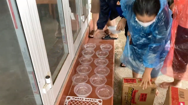 Hình ảnh Thuỷ Tiên đỡ bát mì nóng, trên người vẫn mặc áo mưa ngay trong ngày 20/10 thật khiến người xem cảm động và càng thêm phần cảm phục.