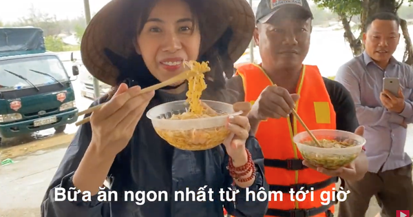 Trước đó, hình ảnh Thuỷ Tiên uống vội một hộp sữa ngay trên thuyền vì đói quá cũng đã lan truyền khắp các trang mạng xã hội. Đặc biệt, mới đây nhất, chia sẻ của nữ ca sĩ về bữa ăn ngon nhất trong những ngày đi cứu trợ ở vùng lũ càng khiến người xem cảm động.