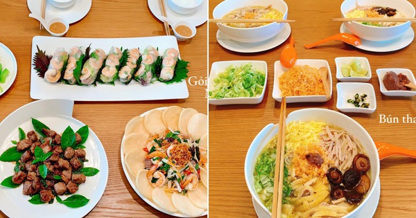 Các mâm cơm nhà chị Trang khi thì là món thuần Việt như bún thang, lúc lại kết hợp nhiều món đến từ nhiều nền ẩm thực như Mỹ, Trung Quốc, Nhật, Ý...