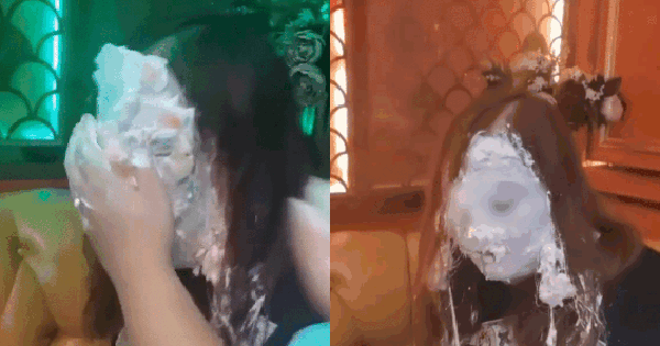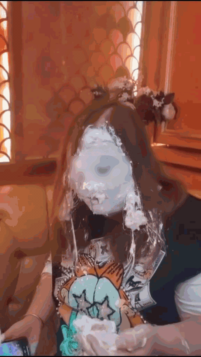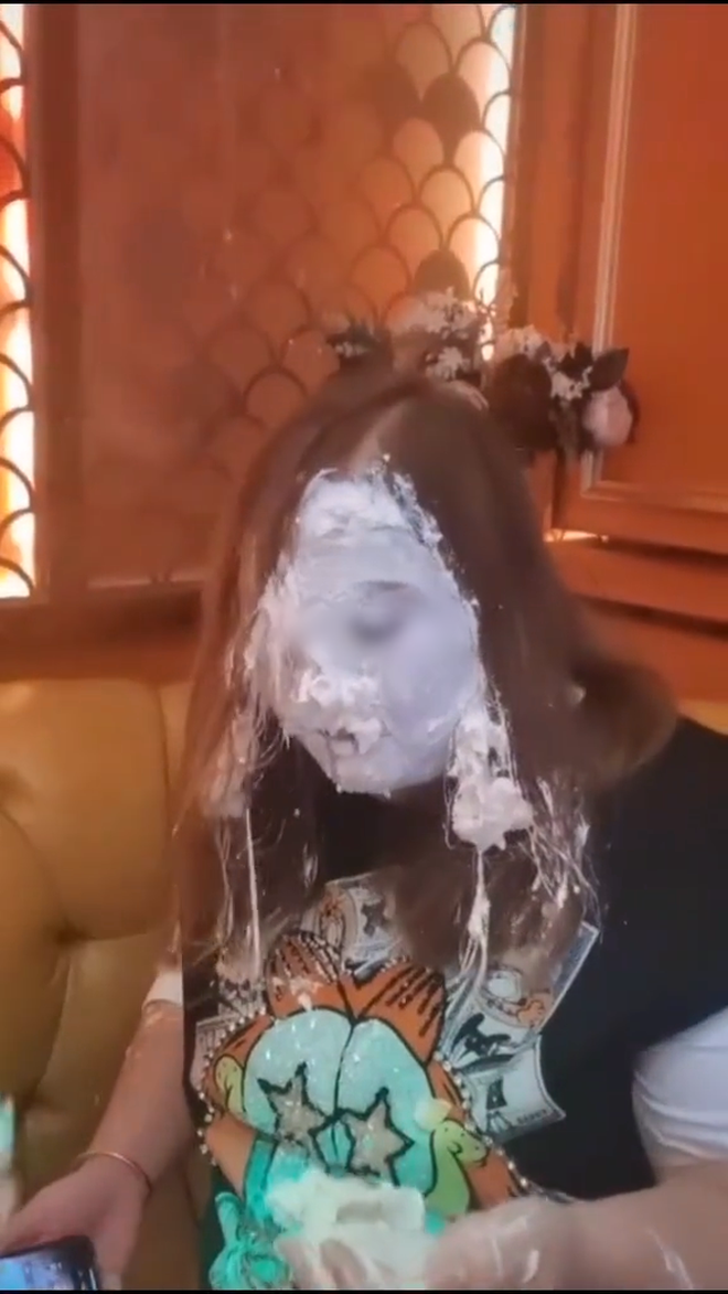Cụ thể, trong một clip được lan truyền trên TikTok gần đây, thay vì hành động "quẹt nhẹ" kem thường thấy là bàn tay của những thanh niên đang sỗ sàng "đắp" bánh kem lên mặt một cô gái, theo nghĩa đen. Cô gái xấu số luôn cố gắng phản kháng và gạt bỏ phần kem trên mặt nhưng gần như là không thể vì lớp kem quá đặc và dày.