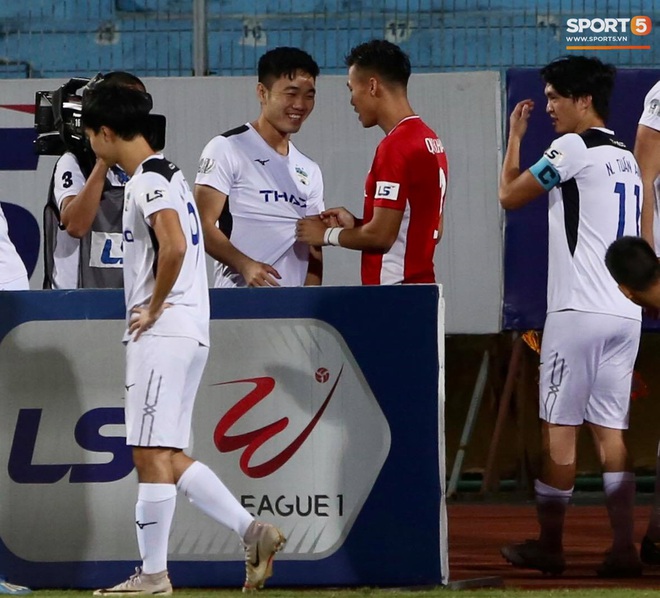 Trước trận, cầu thủ hai đội vui vẻ trò chuyện thân thiết với nhau. Trận đấu như cuộc hội ngộ của những tuyển thủ quốc gia nổi tiếng. Quế Ngọc Hải vừa nói vừa kéo áo trêu cậu em "cây khế" Xuân Trường