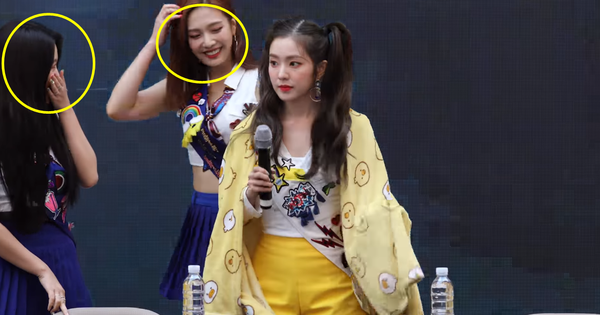Theo sau Irene là Joy và Yeri. Bộ đôi bất chợt khựng lại khi thấy chị cả của nhóm chuẩn bị an tọa ở vị trí trung tâm. 2 nữ idol liếc nhìn nhau và mỉm cười gượng gạo. Dù có ghế trống trước mặt Joy và Yeri nhưng họ không ngồi xuống mà cứ đi quanh quẩn, tỏ ra lúng túng không biết phải làm gì.
