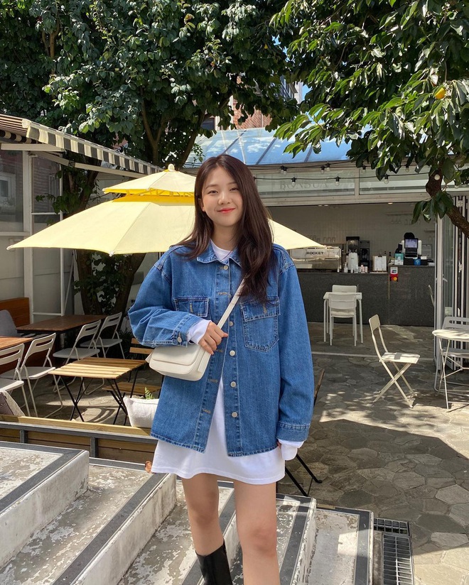 Bao mùa mốt trôi qua, denim jacket vẫn đứng đầu bảng trong danh sách những items "đinh" của hội sành mặc trong mùa lạnh. Đây là kiểu áo mà chỉ cần diện lên, bạn sẽ cool ngầu và cá tính hơn tắp lự. Công thức đơn giản mà trendy chuẩn phong cách "Hàn Xẻng" là denim jacket kết hợp với quần tây ống rộng. Nàng nào thích trẻ trung nhưng vẫn nữ tính có thể phối kiểu áo này cùng với chân váy. Trong trường hợp bạn muốn kết hợp denim jacket với quần jeans để tạo nên cây đồ denim-on-denim thì cũng vẫn ổn, chẳng ai chê bạn lỗi thời đâu.