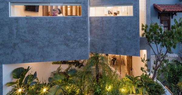 Tận dụng giếng trời và hệ thống thông gió phía sau, một khu vườn được bố trí ngay sau bức tường chắn gió để tạo mảng xanh cho ngôi nhà. Khu vườn này đóng vai trò điều hòa không khí tự nhiên, giúp ngôi nhà nhận được không khí mát và sạch cũng như giảm nhiệt do bức xạ mặt trời. Khu vườn này còn mang đến tầm nhìn xanh, thoáng từ phòng ngủ và phòng tắm, giúp gia chủ cảm nhận được sự thư thái, thoải mái khi hòa mình vào thiên nhiên. Bên cạnh đó, một thảm cỏ xanh mướt được trồng trên ban công tầng 2. Đây là nơi mà bố mẹ có thể dành thời gian nghỉ ngơi, chơi đùa cùng con cái. Với diện tích 300m2, ngôi nhà được chia làm 3 tầng, bao gồm cả tầng lửng và tầng trệt.