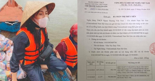 Tối hôm nay (22/10), Thuỷ Tiên công khai bản sao kê ngân hàng đợt 1 sau hơn 1 tuần làm công tác cứu trợ tại miền Trung. Với số tiền đóng góp vượt qua con số 100 tỷ đồng, công chúng đang tranh cãi về vấn đề việc Thủy Tiên sẽ sử dụng số tiền này thế nào. Trước thắc mắc này, nữ ca sĩ cũng chia sẻ thêm rằng cô đang làm việc trực tiếp với chính quyền địa phương để hỗ trợ diện rộng. Cô hé lộ số tiền đã chi để cứu trợ miền Trung là 2 tỷ 669 triệu 705 nghìn đồng.