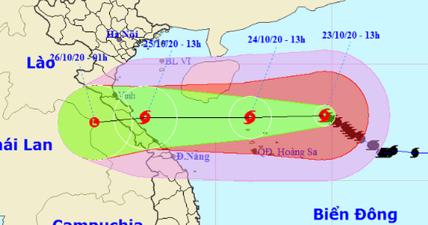 Theo thông tin từ Trung tâm Dự báo Khí tượng Thủy văn Quốc gia, hồi 13 giờ ngày (23/10), vị trí tâm bão ở khoảng 17,8 độ vĩ bắc; 114,7 độ kinh đông, cách quần đảo Hoàng Sa khoảng 280km về phía Đông Đông Bắc. Sức gió mạnh nhất vùng gần tâm bão mạnh cấp 12-13 (115-150km/giờ), giật cấp 15. Bán kính gió mạnh từ cấp 6, giật từ cấp 8 trở lên khoảng 260km tính từ tâm bão; bán kính gió mạnh từ cấp 10, giật từ cấp 12 trở lên khoảng 160km tính từ tâm bão.
