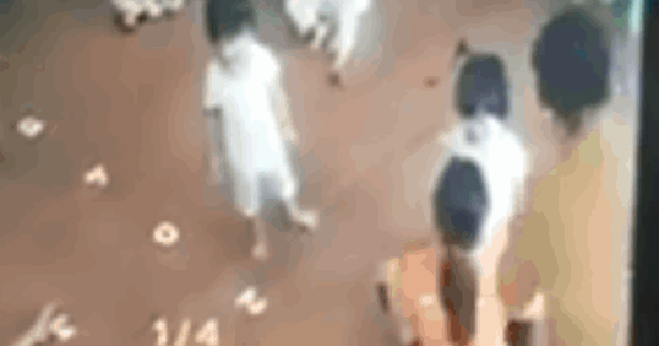 Lúc này, một người đàn ông từ ngoài tiến đến vị trí cô giáo và tát thẳng vào mặt bé gái khiến bé bị loạng choạng.