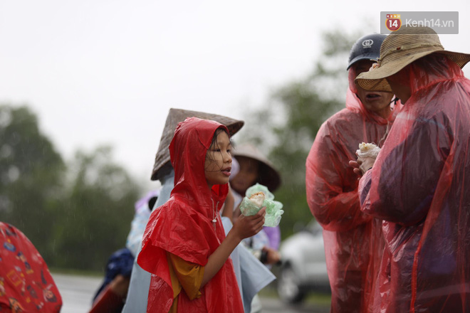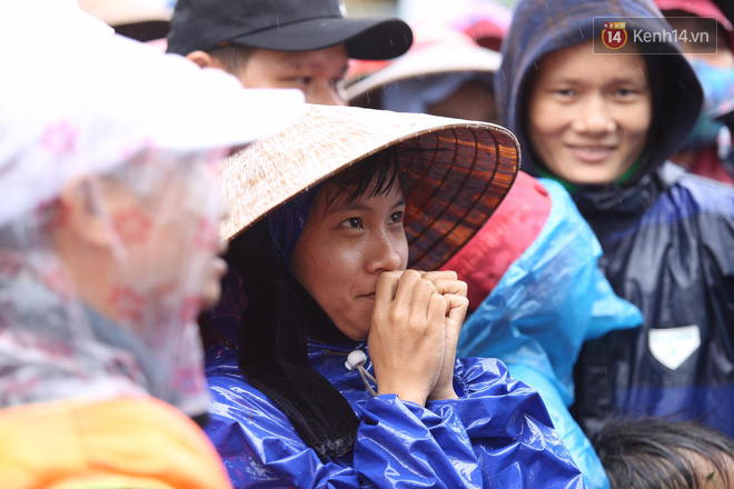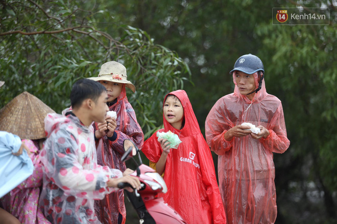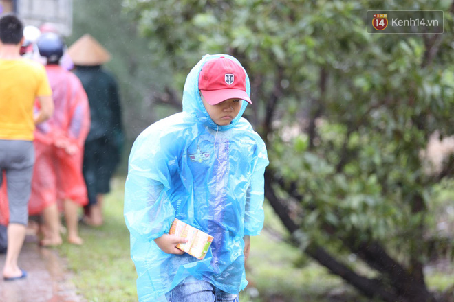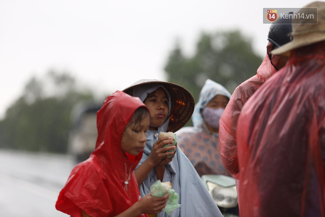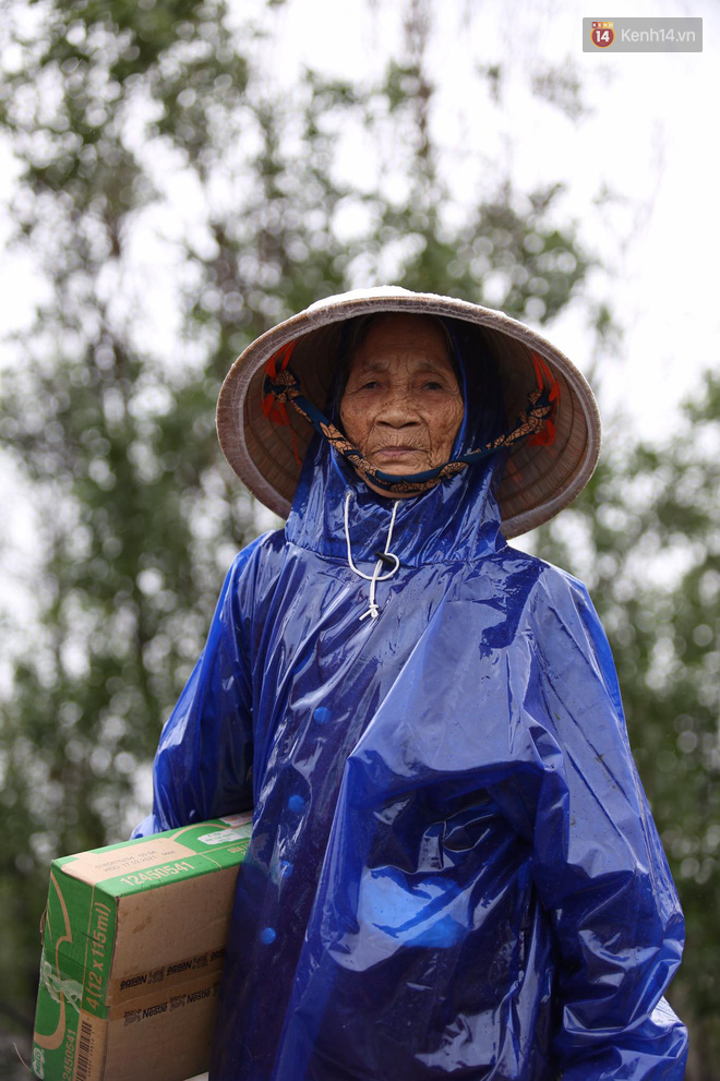 Mưa lớn, trời lạnh nhưng nhiều cụ bà lớn tuổi, nhiều em nhỏ vẫn đứng hàng giờ để chờ hàng cứu trợ.