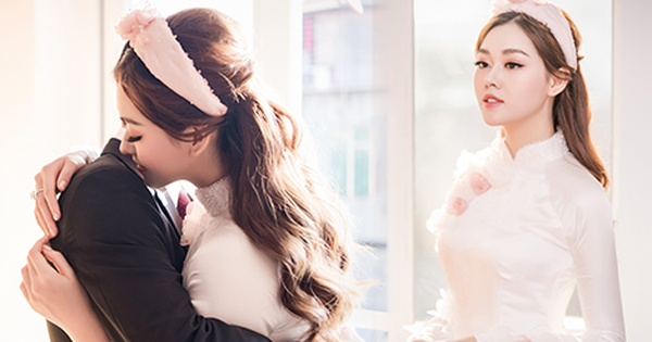 Trong ngày lễ rước dâu diễn ra tại Hà Nội, Tường San diện áo dài hồng thướt tha, make up sương sương nhưng vẫn cực xinh xắn. Đặc biệt nhất, cô dâu còn khoe khéo nhận nhẫn kim cương "siêu to khổng lồ" trong ngày trọng đại. Mặc dù không hé lộ dung mạo chú rể, tuy nhiên, Tường San đã chia sẻ những khoảnh khắc tân lang tân nương ôm lấy nhau đầy hạnh phúc. Hình ảnh nàng Á hậu bé nhỏ trong vòng tay ông xã gây xúc động.