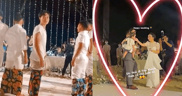 Viên Minh thay dép bệt, tay xách váy tay cầm rượu, quyết tiếp đãi khách mời vui đến cuối tiệc
