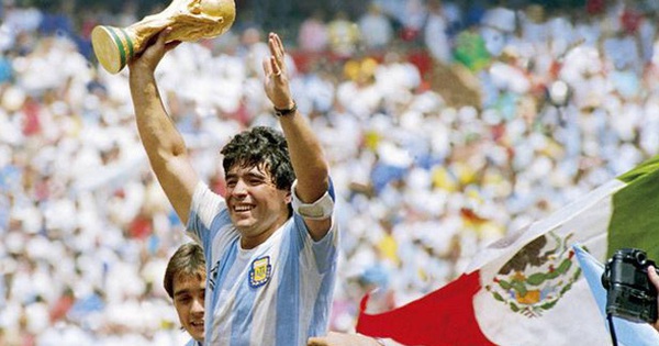 Khoảnh khắc Maradona giơ cao chiếc cúp vô địch World Cup trước sự chứng kiến của 100.000 người hâm mộ tại sân Estadio Azteca, Mexico