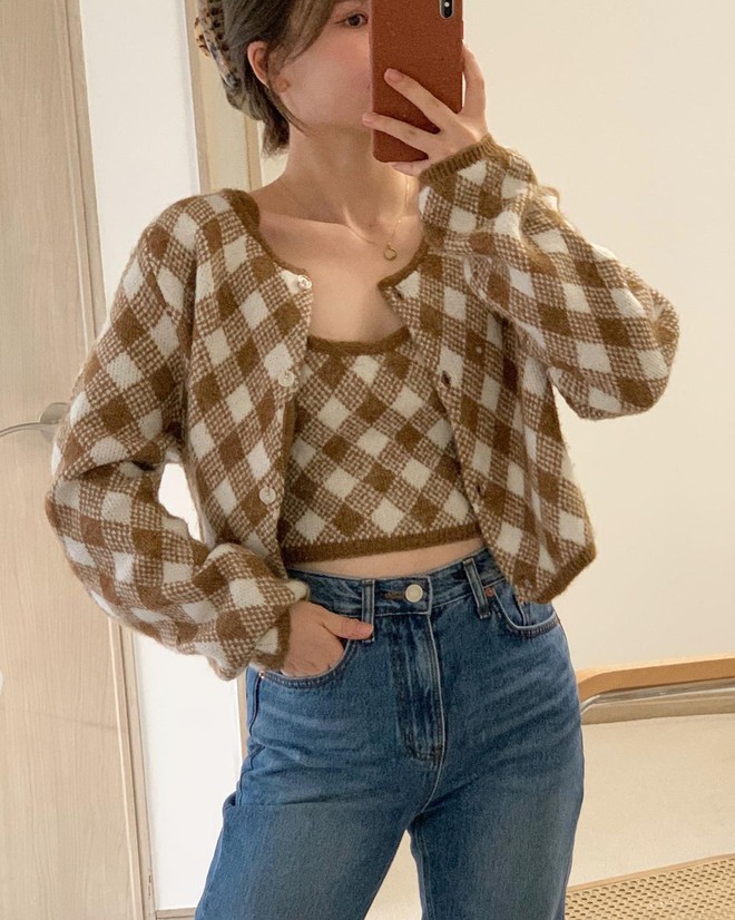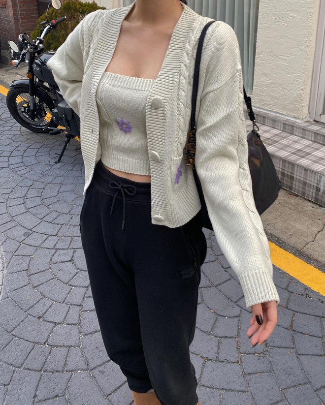 Một set cardigan len chất liệu dày dặn chẳng những giúp bạn giữ ấm tốt mà còn khiến vẻ ngoài thêm thời thượng, trẻ xinh. Chiếc áo crop top bên trong giúp bạn trông ngọt ngào và hoàn thành nhiệm vụ tôn vòng 2 nhỏ nhắn. Sắm trọn một set để thấy chuyện mặc đẹp mùa lạnh vô cùng dễ xơi.