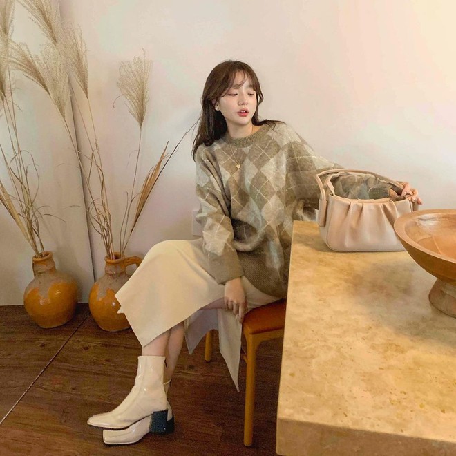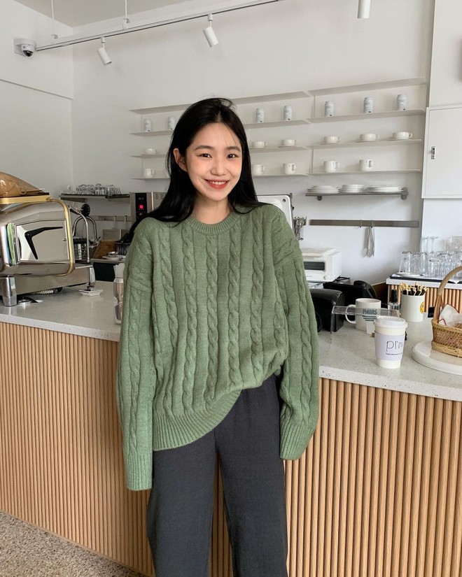 Không cần "chơi" áo len ôm sát cũng được, vì bạn có thể bắt chước hội gái Hàn diện áo len oversized rộng rãi, thoải mái. Dáng áo này tạo cho bạn diện mạo hết sức phóng khoáng, hiện đại luôn. Khi mix áo cùng chân váy điệu đà, bạn lập tức có set đồ đậm chất tiểu thư. Còn khi phối cùng quần âu ống suông thì lại tăng thêm vài điểm xinh cool, cá tính.