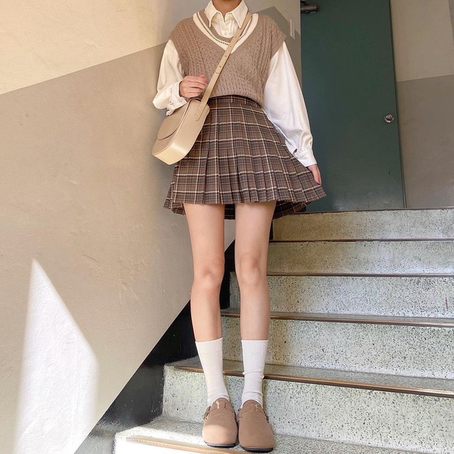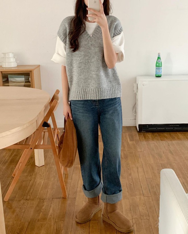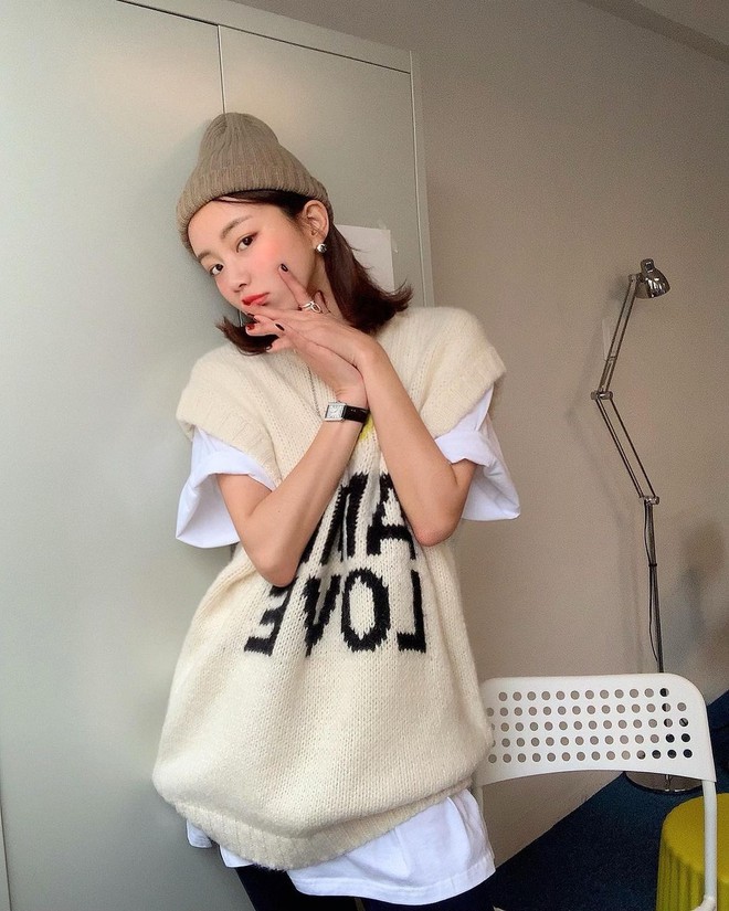 Áo gilet len cũng là item xịn sò cho mùa lạnh, điều này như chân lý rồi không cần bàn thêm. Sở hữu một chiếc áo gilet "Hàn xẻng", bạn sẽ có cây đồ layer mặc mùa đông đẹp "bá cháy". Hai item giúp các tín đồ cân đẹp áo gilet thường là áo phông hoặc sơ mi trắng. Ngoài ra, bạn mix cùng chân váy ngắn hoặc quần jeans đều hay ho không trượt điểm nào.
