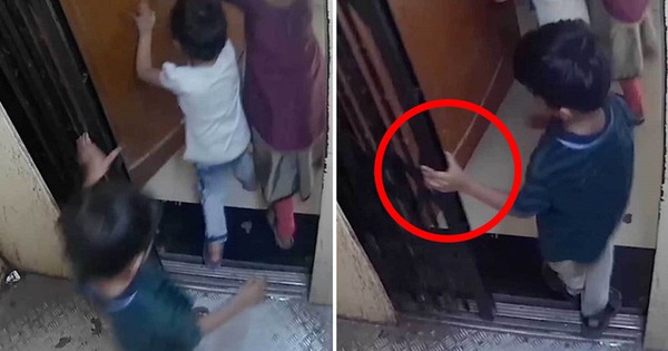 Hình ảnh 3 đứa trẻ trong thang máy mà không có người lớn đi cùng