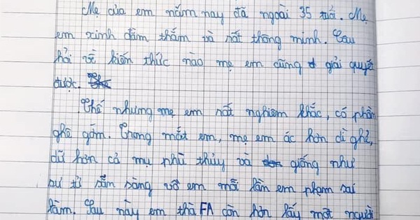 Bà mẹ tâm sự: "Nó bảo con sẽ viết bài văn tả mẹ bằng ngôn ngữ chất và đắt nhất. Đây là lần đầu mình đăng bài, vì muốn chia sẻ một bài văn có phần già trước tuổi của con trai học lớp 4".