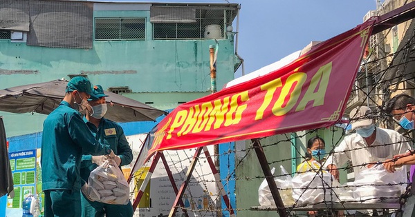 "Tiếp tế" thực phẩm cho người dân tại điểm phong tỏa ở quận 6 - ảnh: HOÀNG TRIỀU