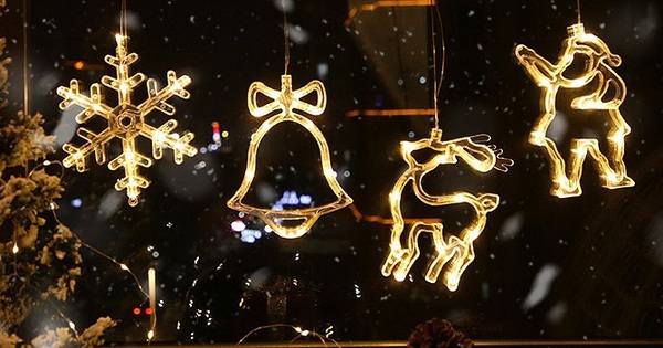 Chiếc dây đèn bông tuyết này cực kì hợp để giăng trên những cây thông cỡ lớn. Ngoài ra, bạn có thể chọn đèn với hoạ tiết quả chuông hay ông già noel để treo ở rèm hay cửa sổ cũng xinh lắm đấy!