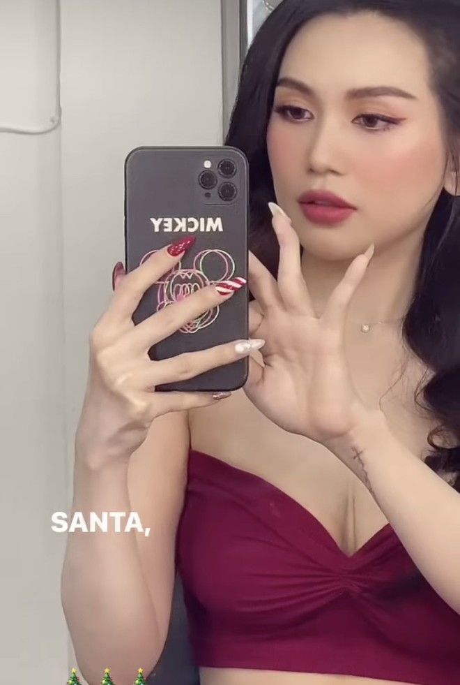 Để không thua chị, kém em, Minh Hằng cũng diện váy 2 dây gợi cảm hợp không khí Giáng sinh