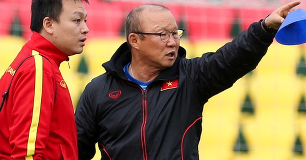 HLV Park Hang-seo cũng có mặt. Công việc đầu tiên của ông là đi khắp mặt sân để kiểm tra