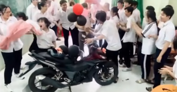 Như mới đây, trên mạng xã hội xuất hiện đoạn clip ghi lại khoảnh khắc hài hước mà các bạn học sinh đang cố gắng tạo bất ngờ cho thầy giáo. Theo chính chủ chia sẻ, mỗi lần lên lớp là thầy lại liên tục than nghèo, điều kiện kinh tế khó khăn. Vậy nên tụi học trò đã quyết định... tặng luôn cho thầy 1 chiếc xe máy làm phương tiện di chuyển.
