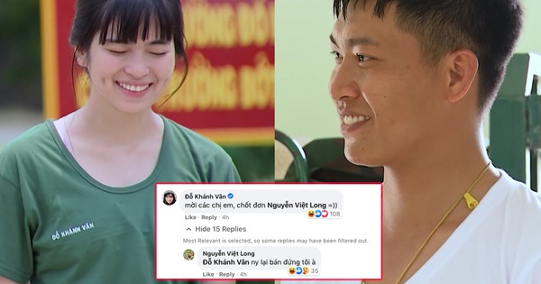 Ngay bên dưới bài đăng về những hình ảnh của Thượng uý Nguyễn Việt Long trên fanpage Sao Nhập Ngũ, Khánh Vân đã mạnh dạn tag thẳng tài khoản Facebook chỉ huy của mình, nhằm giới thiệu đến các fan nữ. Đáng chú ý, Thượng uý đã đáp lại bằng bình luận đầy ẩn ý: "Ny lại bán đứng tôi à". Từ viết tắt "Ny" phải chăng là "Người yêu"?