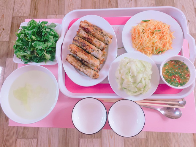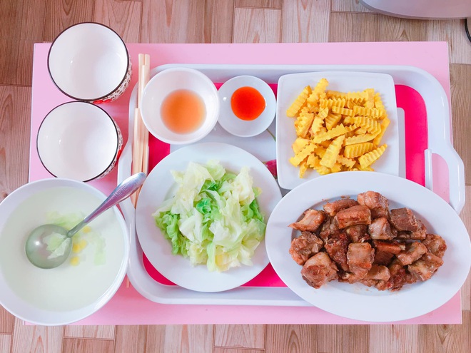 Những mâm cơm của Ngân Hoa trông vô cùng bắt mắt và ngon lành. Thậm chí, không ít người thắc mắc vì sao cơm sinh viên mà sang - xịn - mịn thế