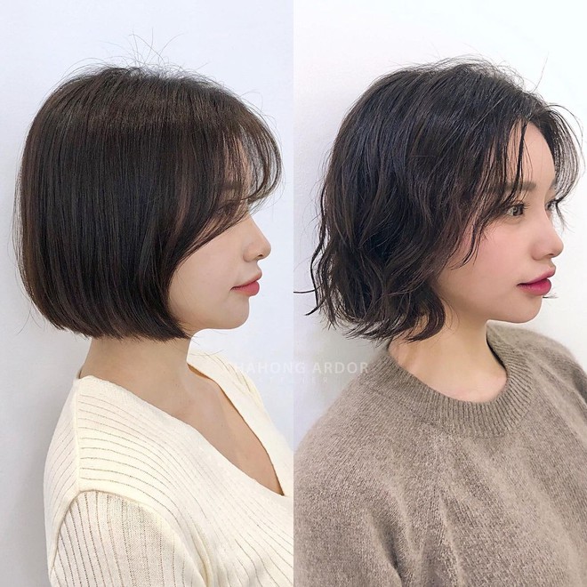 Lợi hại lớn nhất của kiểu tóc này nằm ở chỗ các lớp tóc uốn sóng sẽ ôm nhẹ nhàng vào hai bên má khiến gương mặt tự động nhỏ đi. Thử "xén" rồi bạn sẽ thấy chúng hợp với "team mặt tròn" đến thế nào. Không cần đến dao kéo, mặt bạn vẫn sẽ thanh tú hơn nhờ vào kiểu tóc bob uốn siêu hack tuổi.